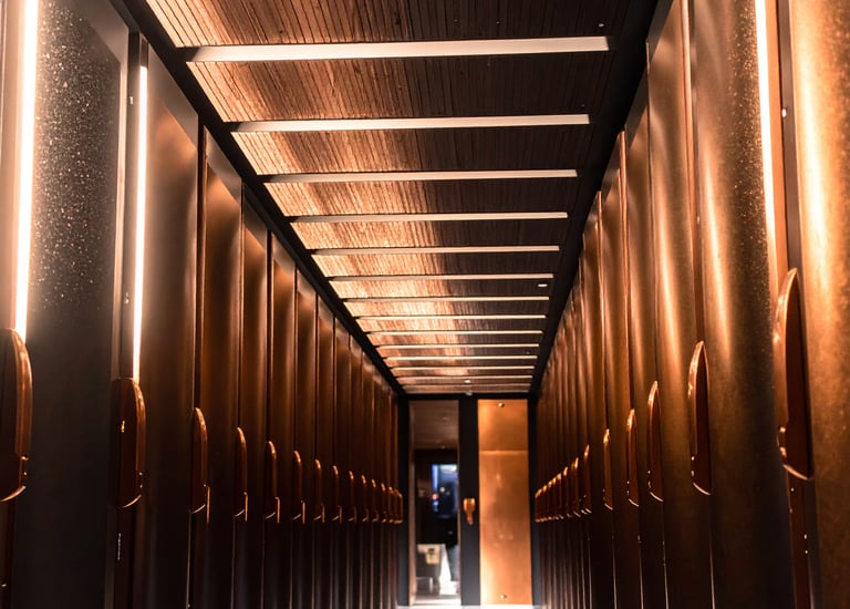 For sites with high ceilings, AirContain's self-supported containment with partial-height panels is highly effective. These panels are engineered to prevent most air recirculation over the cabinet tops without needing to reach the full ceiling height.